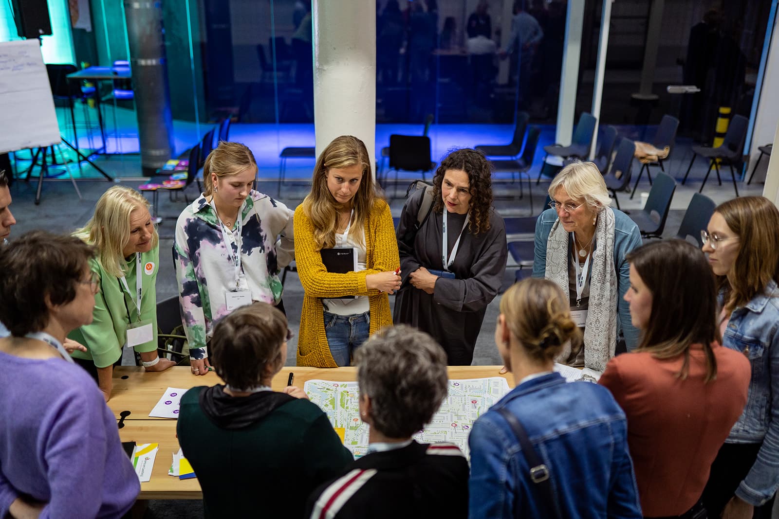 Met Mia Wessels, Tim ’S Jongers (Wiardi Beckman Stichting), Grace Brok en Finn (Wijk voor Elkaar, Buurtgeluk), Karen van Ruiten (Alles is Gezondheid) en Lea Bouwmeester (specialist gezondheidszorg).